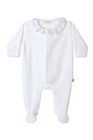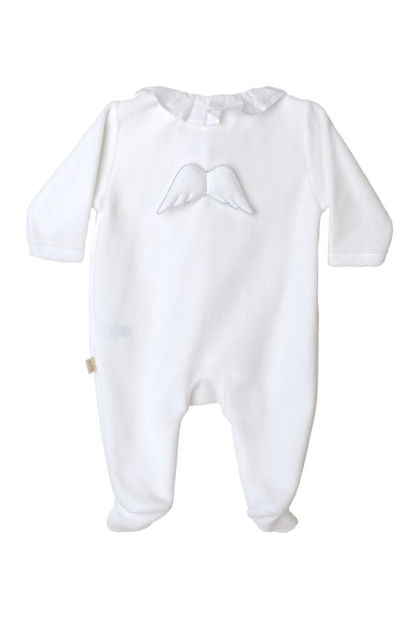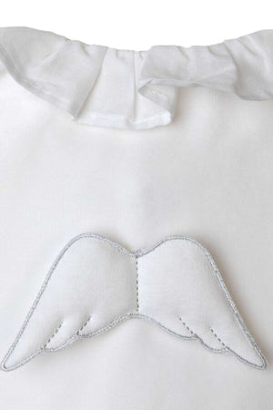 Classic angel wing babygrow from Portuguese brand Baby Gi. Made from a soft feel pima cotton the babygrow features sweet white silver trimmed angel wings to the back, a white cotton waffle textured collar, white feet and concealed popper fastenings to the front and between the legs.