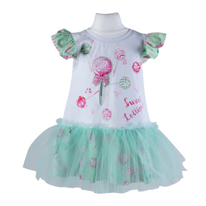 Daga ‘More Sugar’ Girls Mint Lollipop Print Tulle Jersey Dress