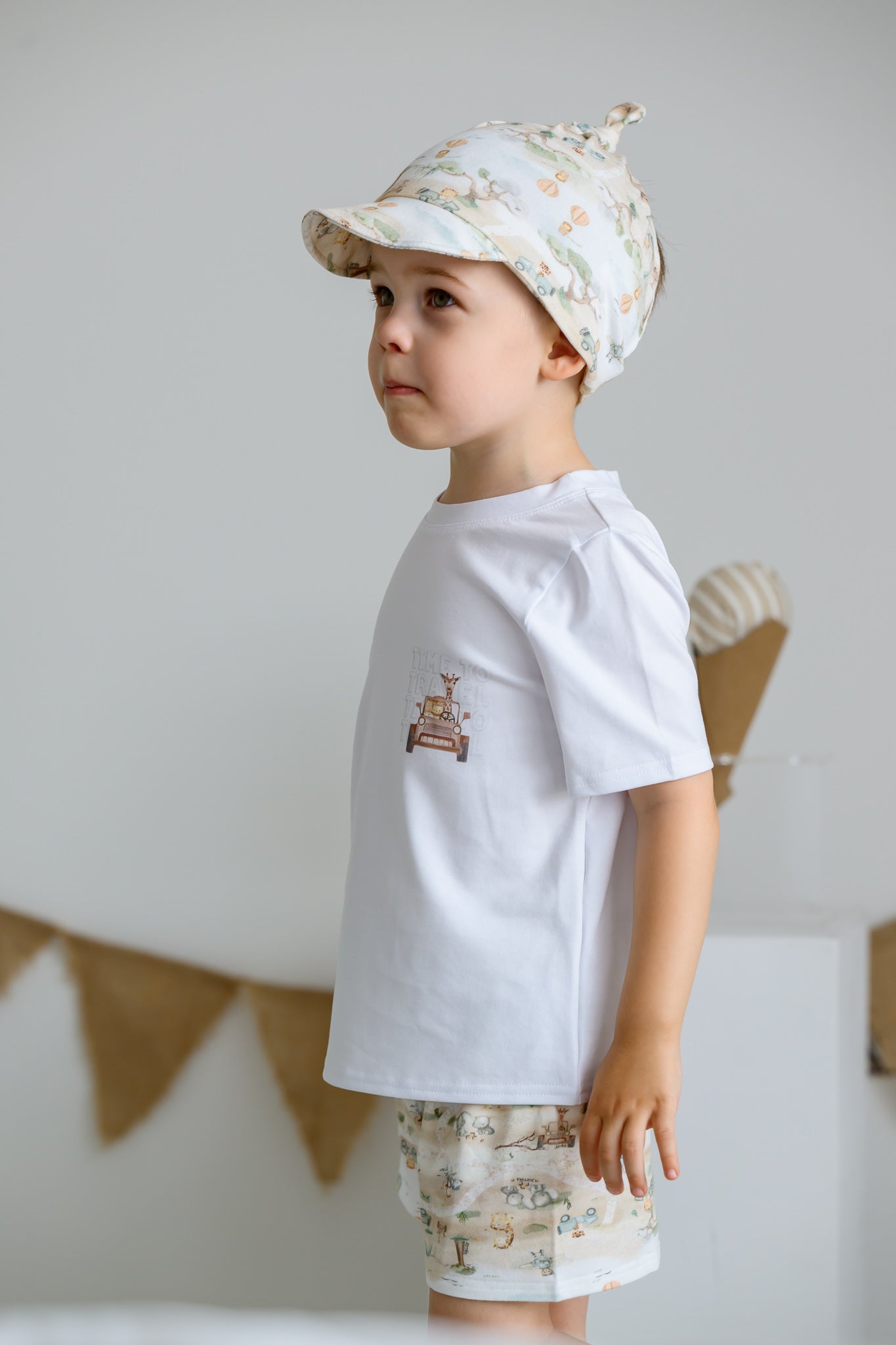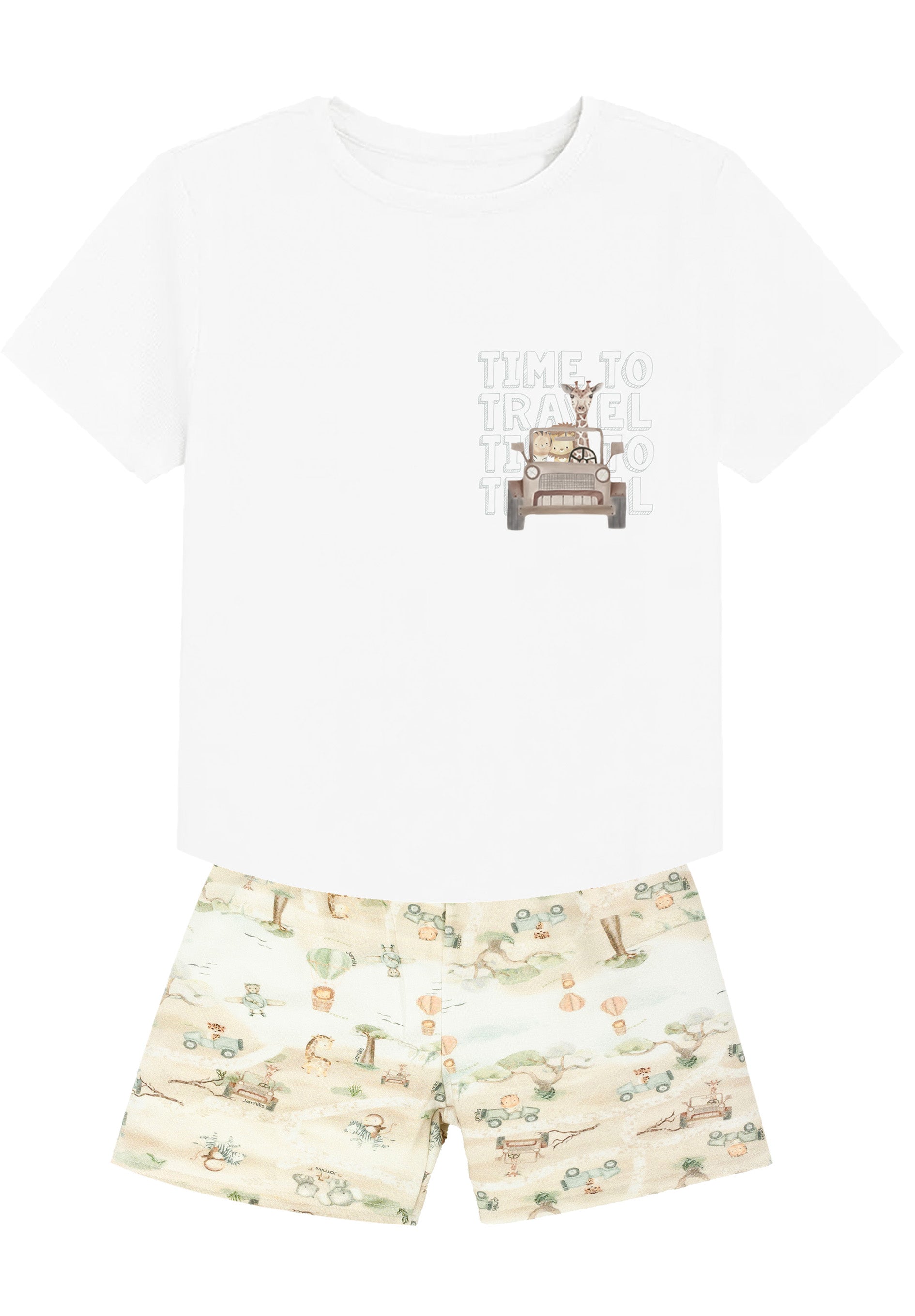 Jamiks Hello Boys White & Sand Safari Print Shorts Set