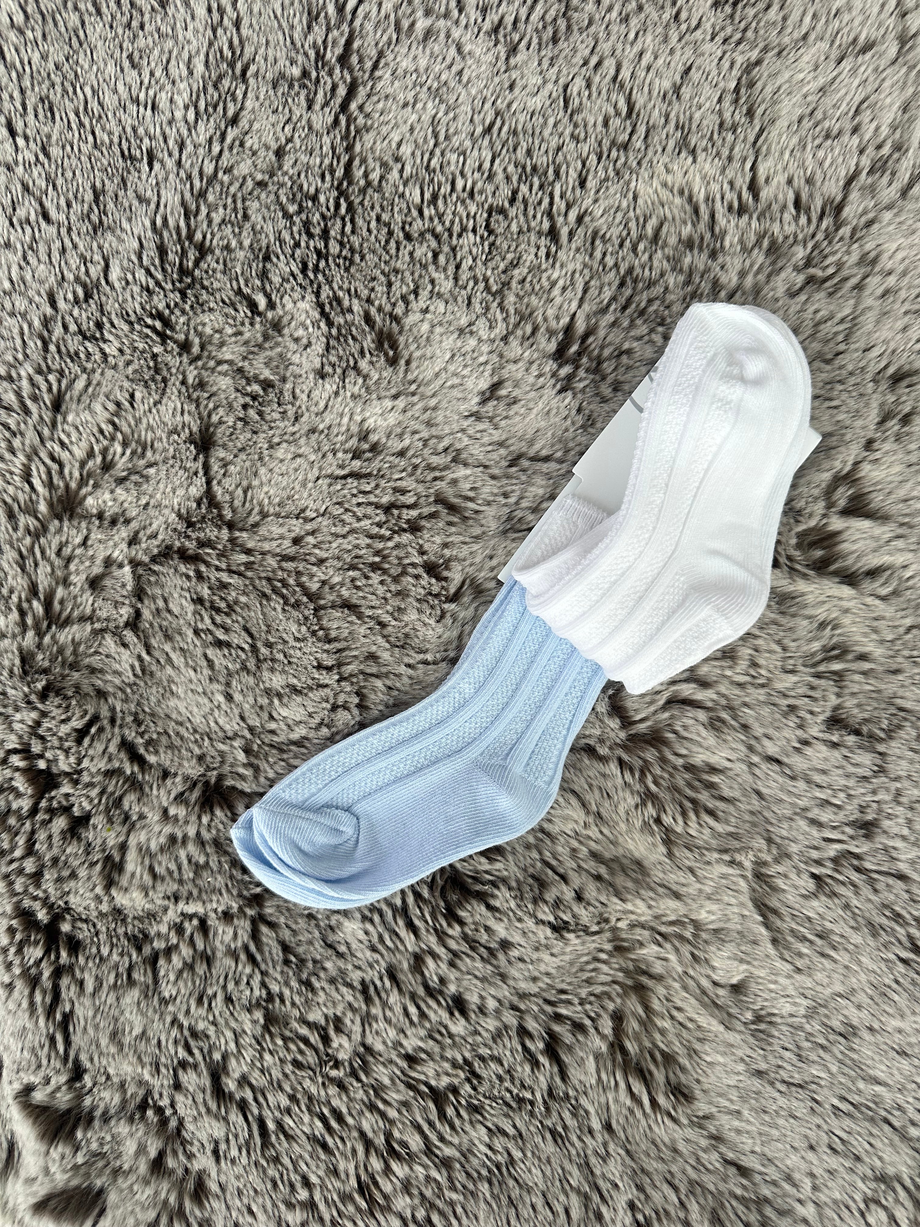 S Two pairs of socks from British brand Pex. One pair of white socks and one blue. The socks have a rib pattern. 70% cotton, 25% nylon, 5% elastane Machine wash 30*C 2 pair pack Brand: Pex