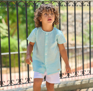 Rapife Green & White Gingham Seersucker Shirt & Shorts Set