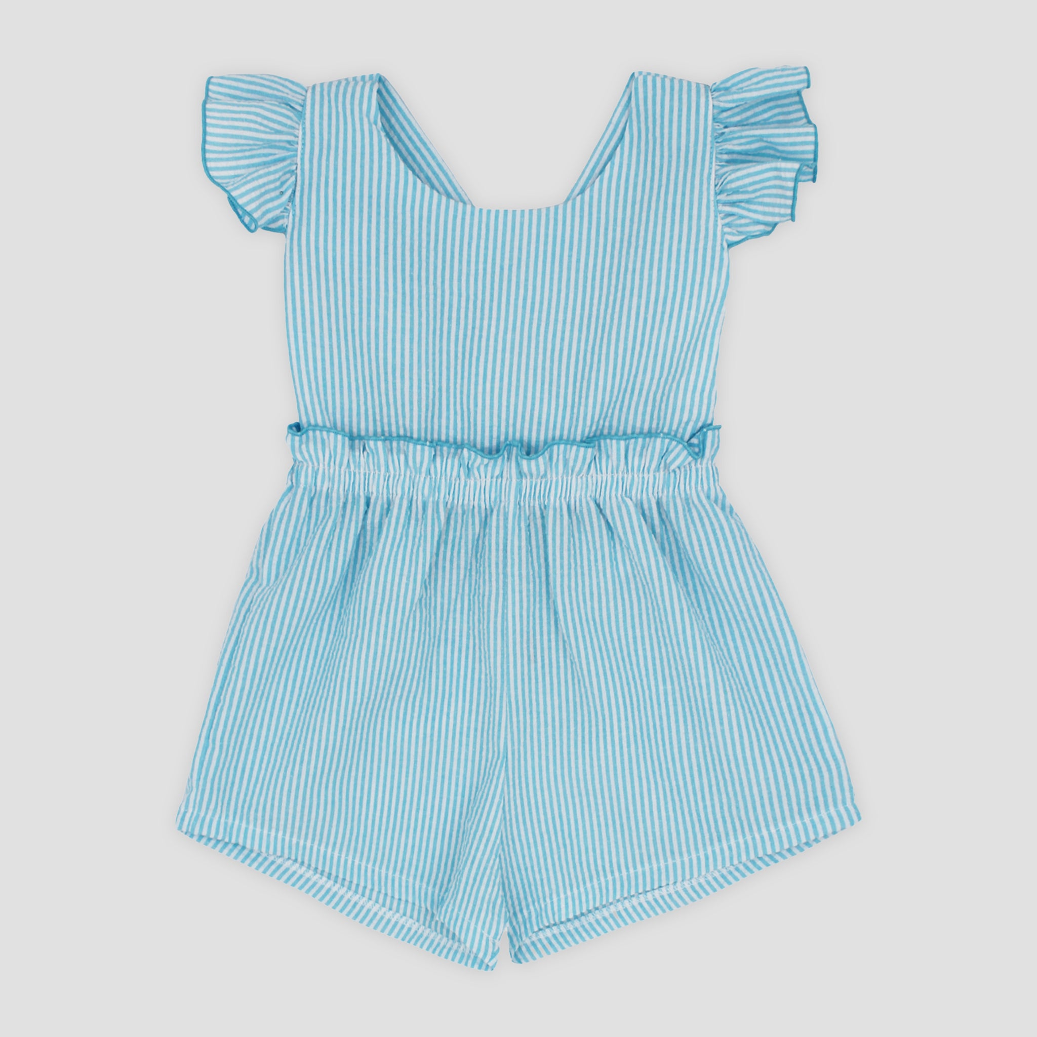 Rapife Turquoise & White Striped Seersucker Playsuit